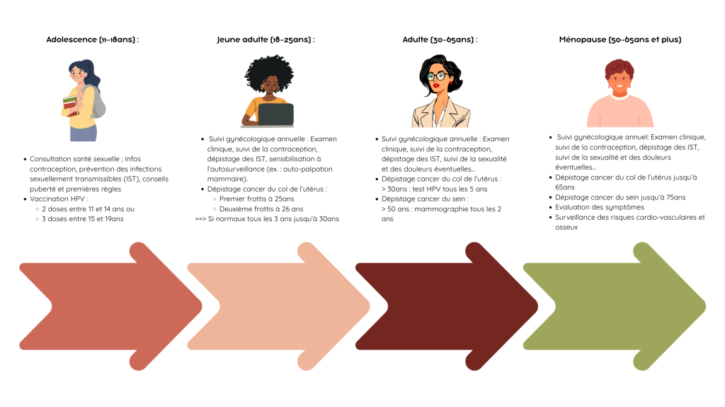 Le suivi gynécologique permet la prévention, le dépistage précoce et la prise en charge des pathologies touchant la santé génésique et sexuelle des femmes.